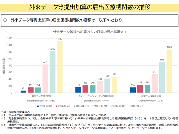 これは、国が外来データ提出加算を通して外来医療の実態把握を進めていくためでもあり、今後の診療報酬改定で対象範囲の拡大とデータ提出の義務化が議論されていくかもしれません。