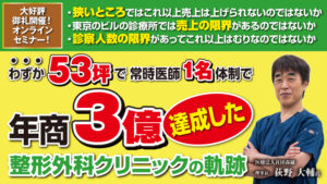 - 整形外科向け毎年130%成長で月商3,500万円達成セミナー