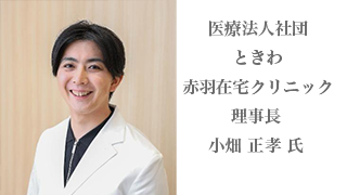 医療法人社団ときわ 理事長 医療法人社団ときわ 赤羽在宅クリニック 院長 小畑 正孝 氏 本日は、在宅医療を提供する「医療法人社団 ときわ 」の設立経緯から組織運営、今後の展望 について 、 医療法人社団ときわ 理事長 小畑様 にお話を伺いました。在宅医療への熱い想い と、革新的な取り組みについてイ…